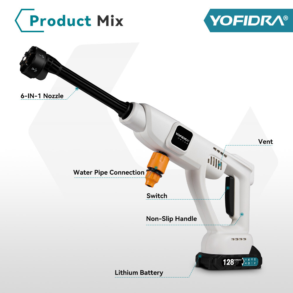 【Upgraded Cordless Pressure Washer】ONEVAN power washer is a handheld portable pressure washer machine that allows you to clean all your outdoor spaces and equipment quickly and easily. This cordless power washer is the new version, with upgraded material and better hand feel. Cordless portable power cleaner It can effectively filter impurities, particles, waste leaves, sludge, etc. in depth to better protect our machines.